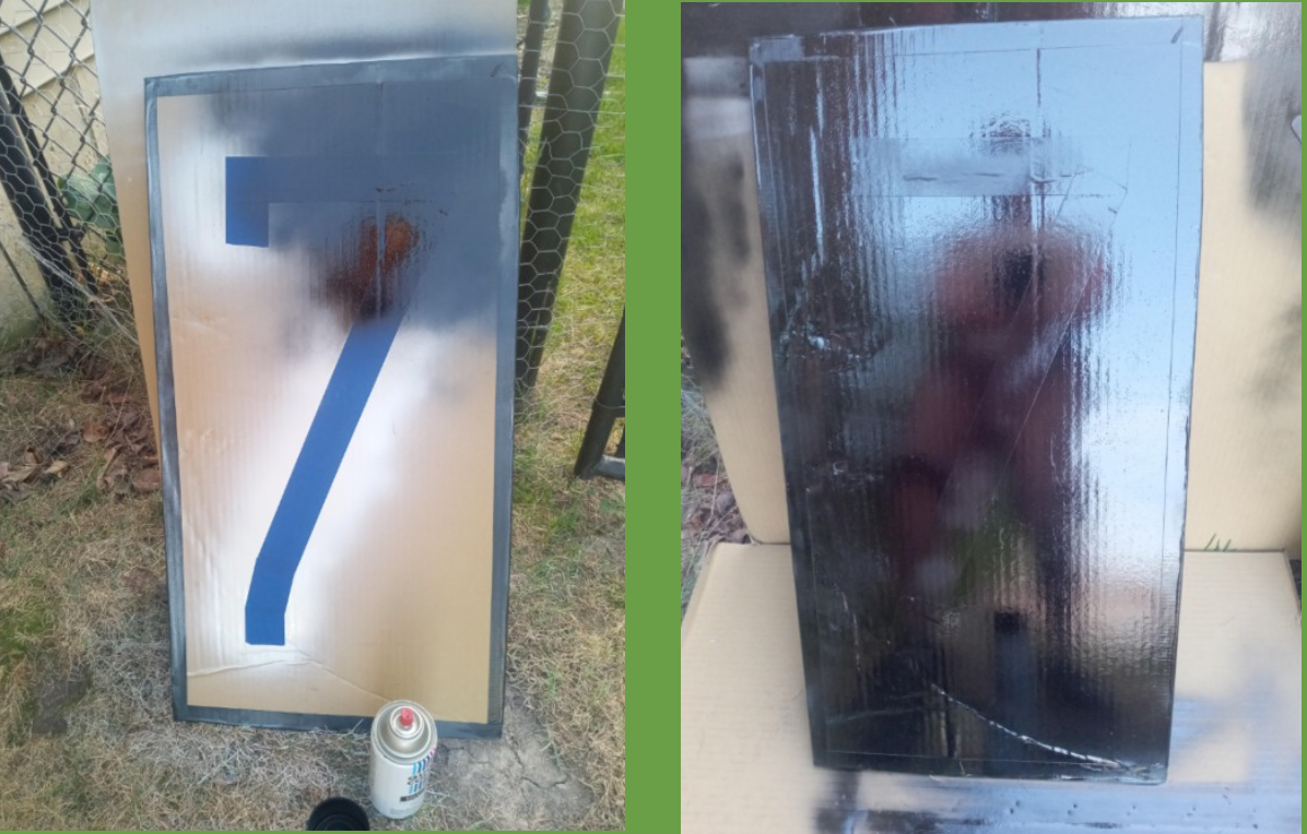 Now spray black paint over the entire face of the sign. Again, use two to three coats of black paint to get good coverage. Let the paint dry between coats.